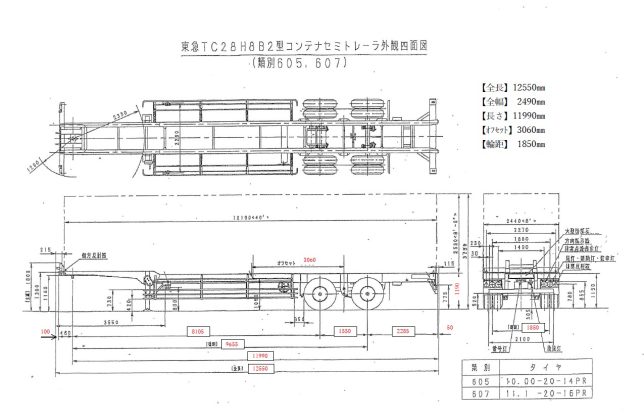 参考にしてみてください。PDF⇒ 特車用外観図 海コン40ft 東急TC28H8B2